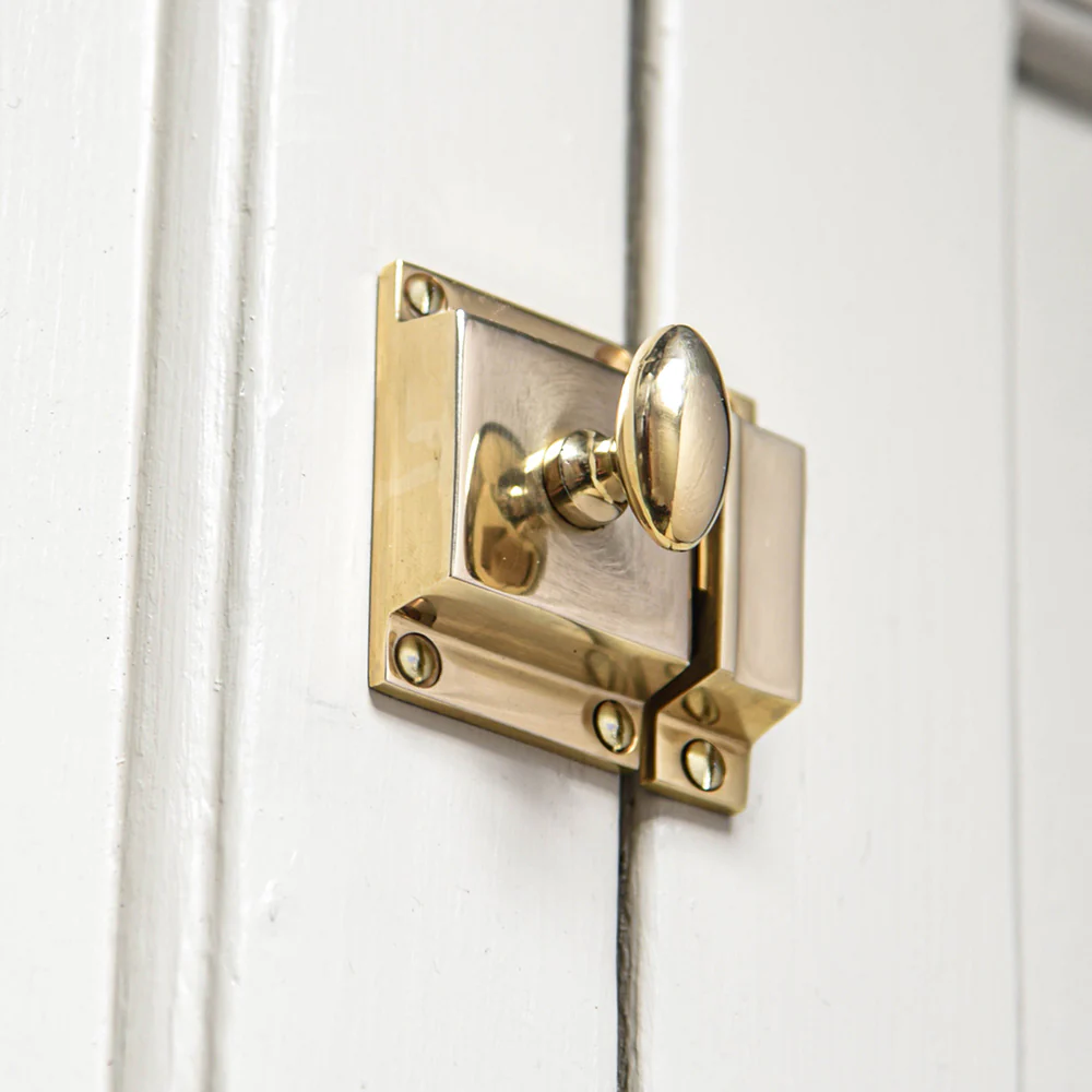 This simple yet elegantĀ cupboard latch is made from solid unlacquered brass which gives the option of keeping it polished or allowing it dull down and age over time. With a sprung catch to open and close doors, this would make a lovely feature on any cabinet or cupboard door.